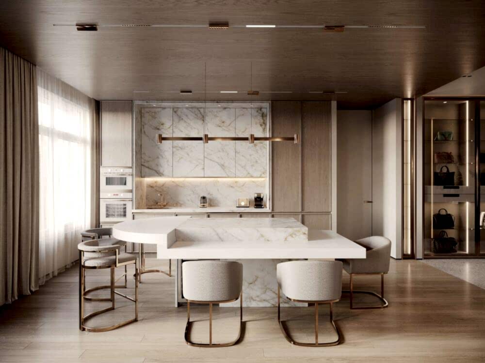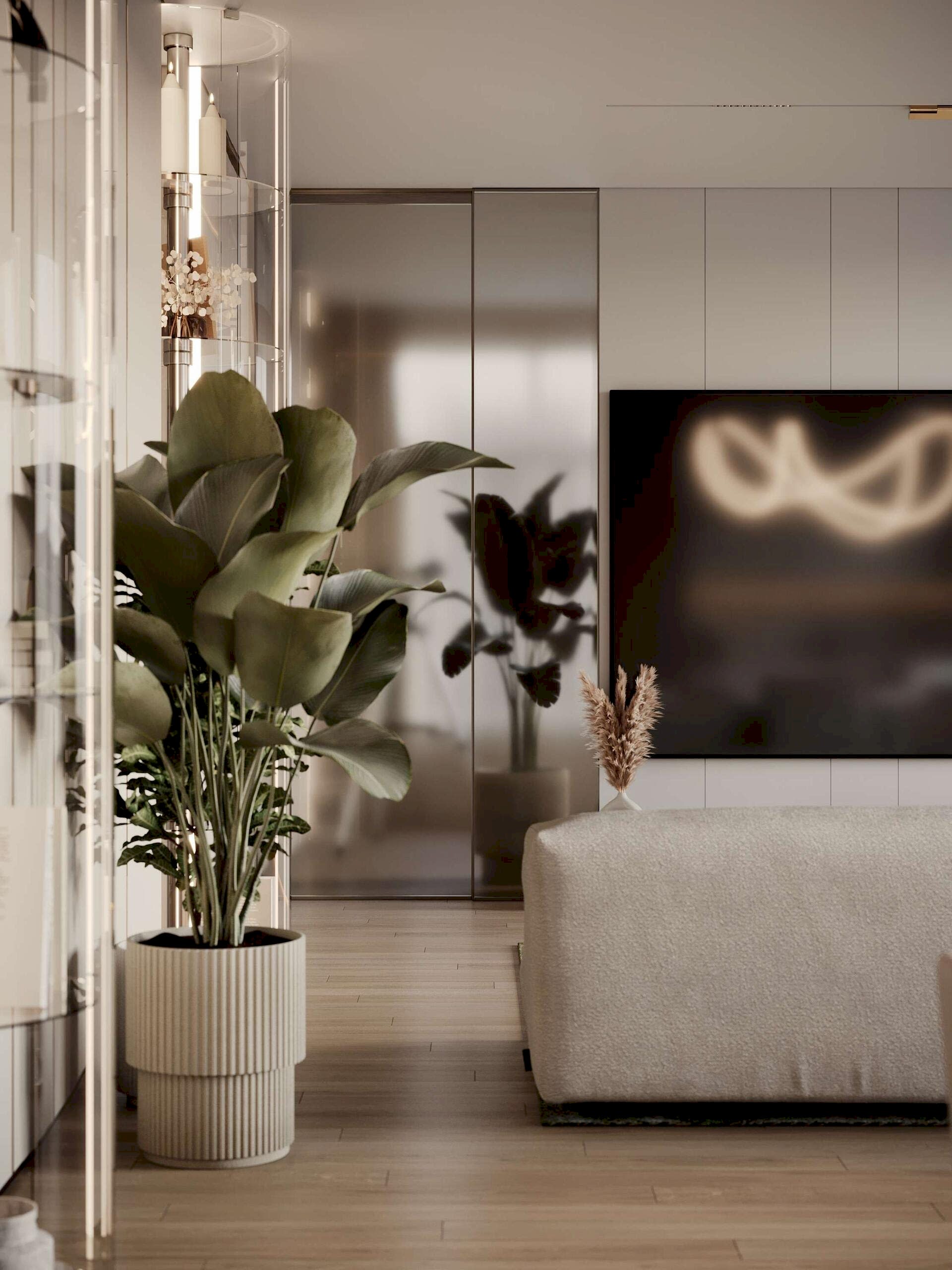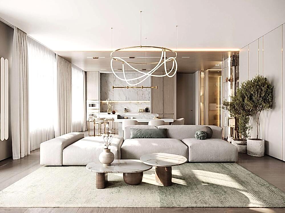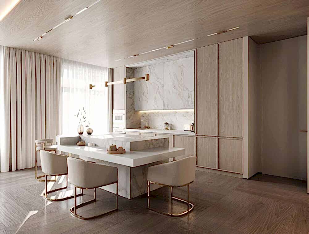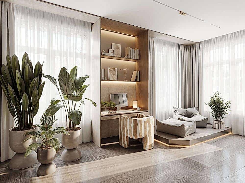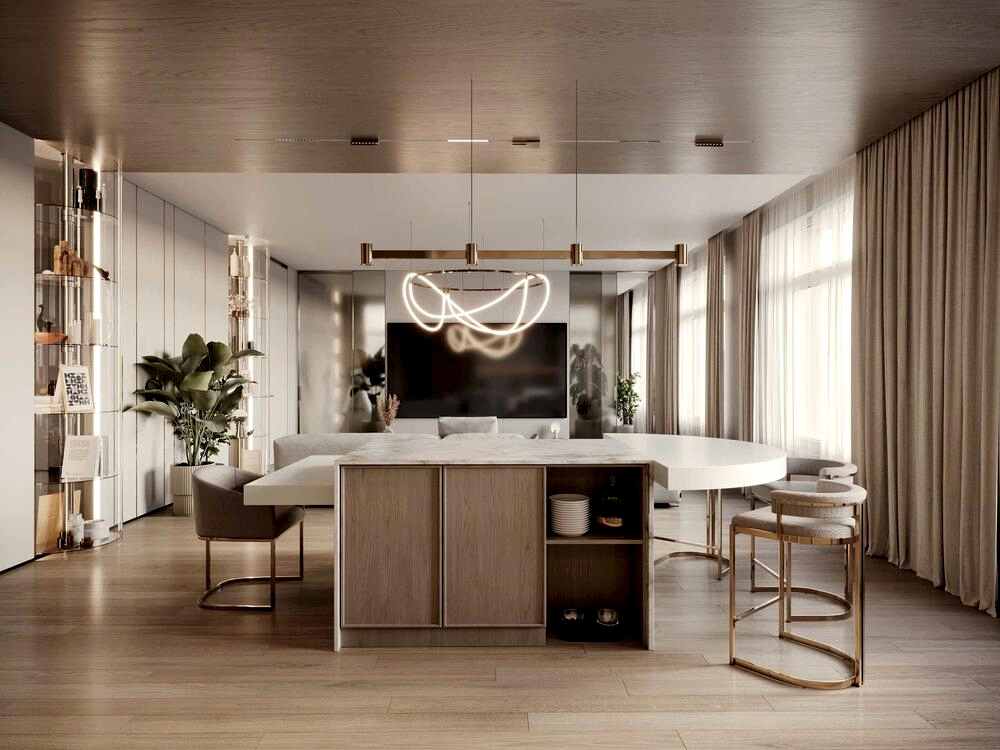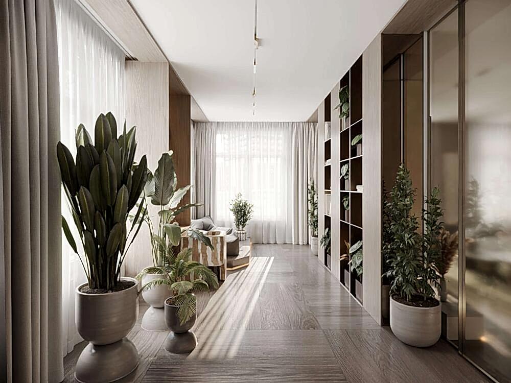 Дизайн интерьера квартиры в стиле минимализм и джапанди в ЖК «NEVA Pin-Up (Нева Хаус) - 203 м²