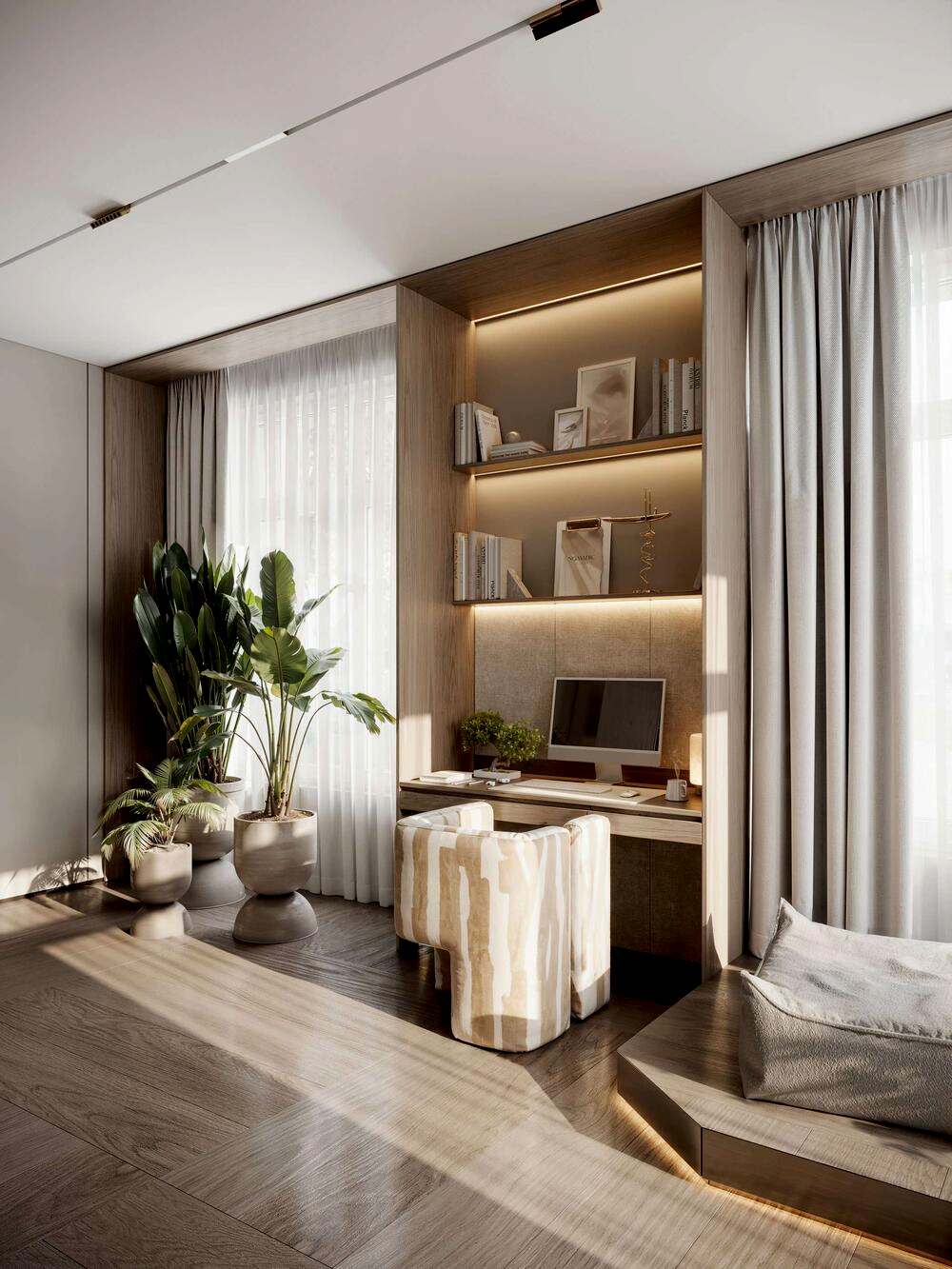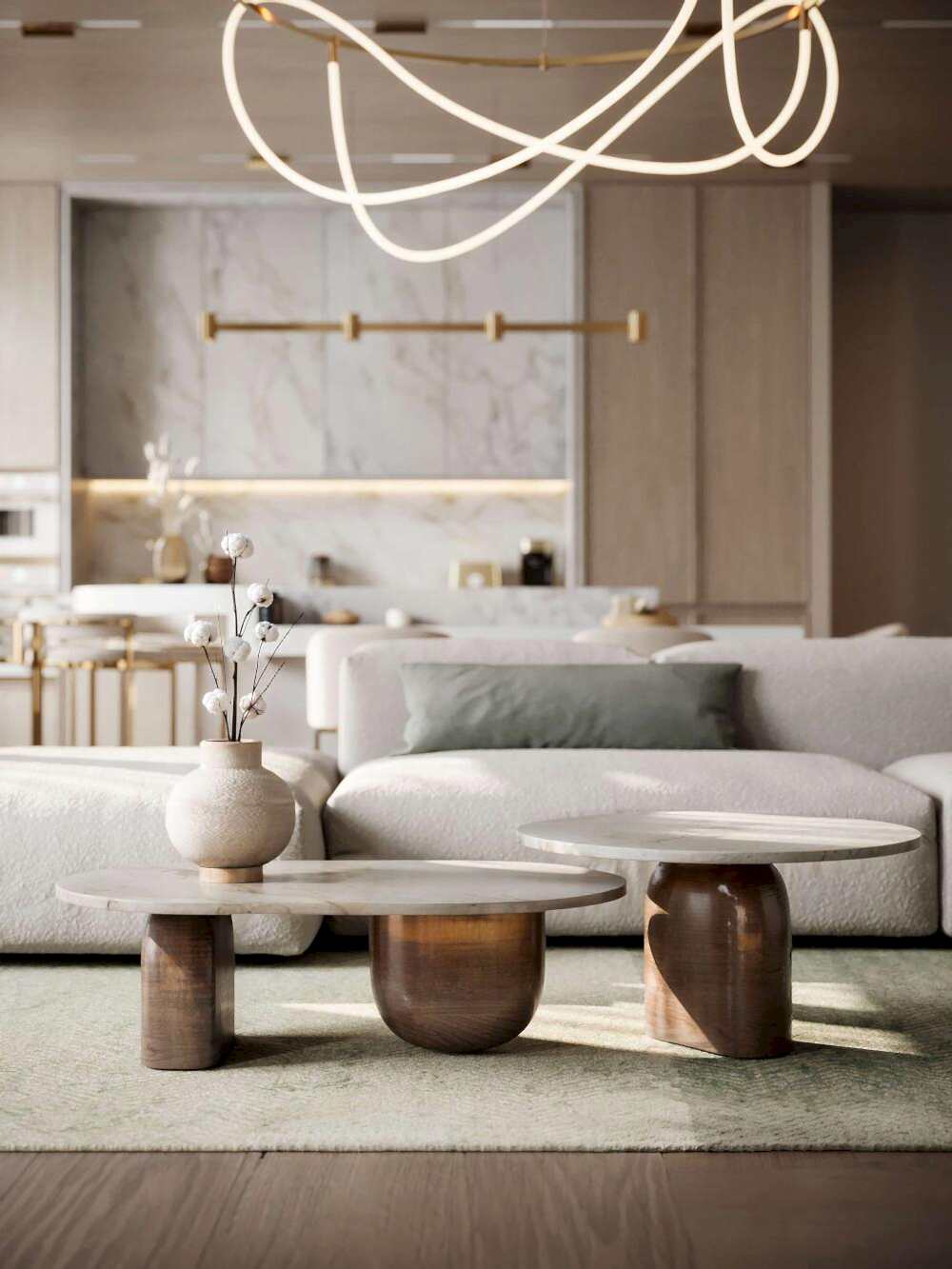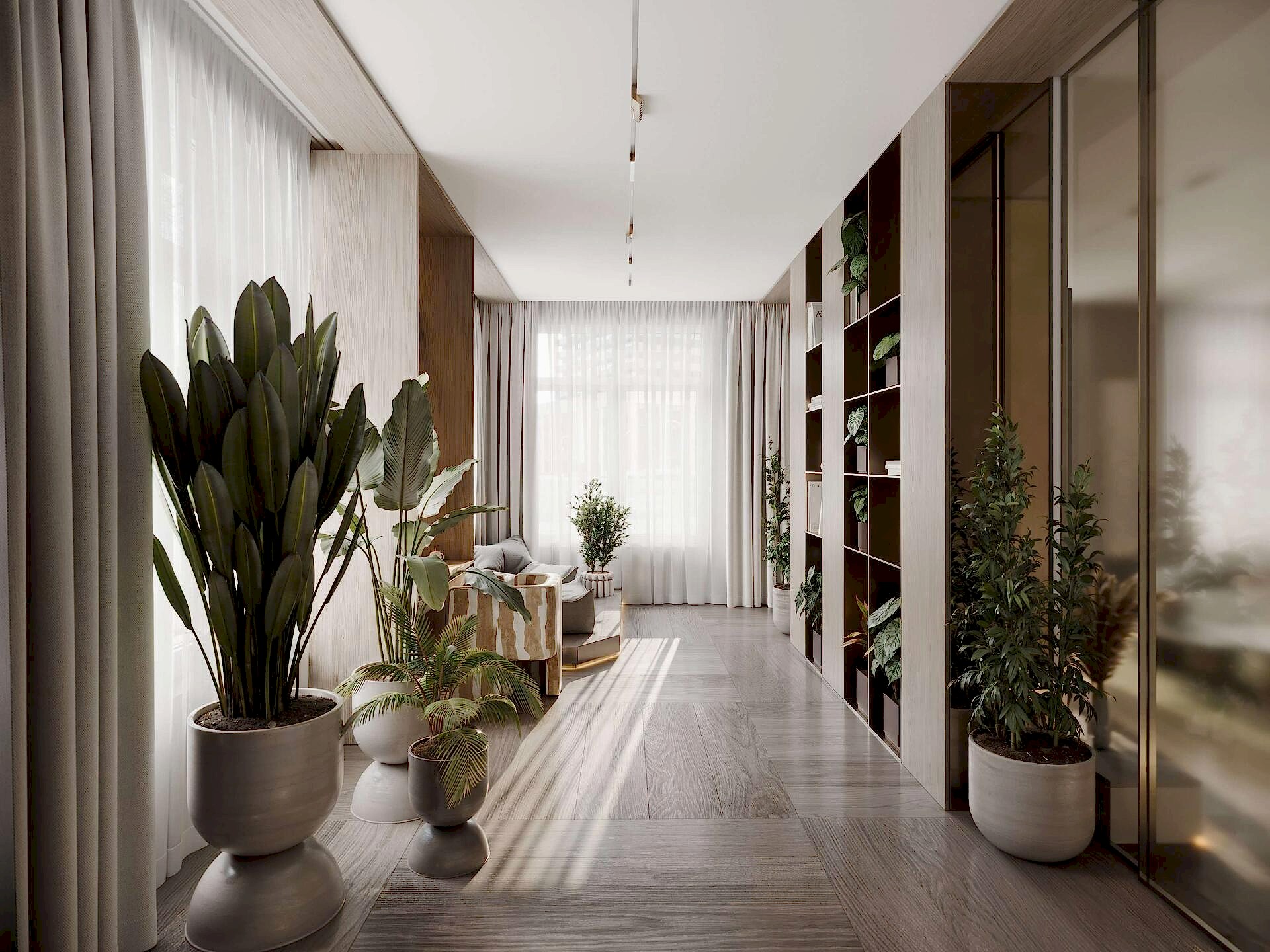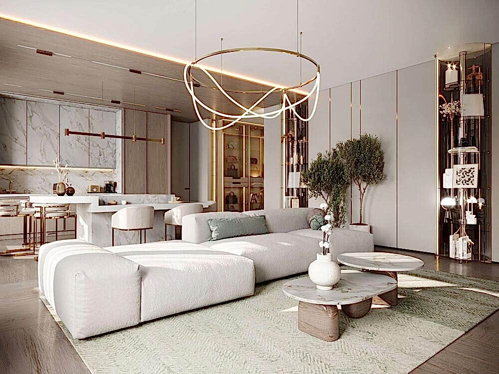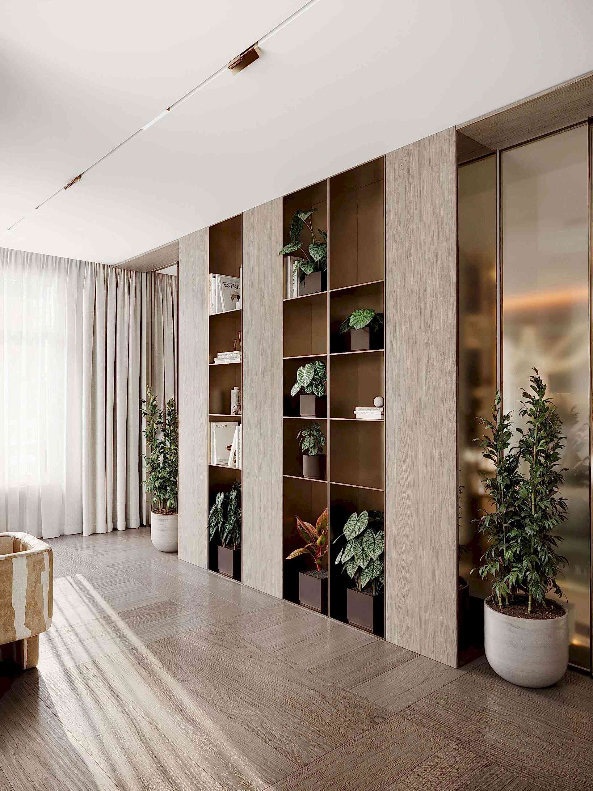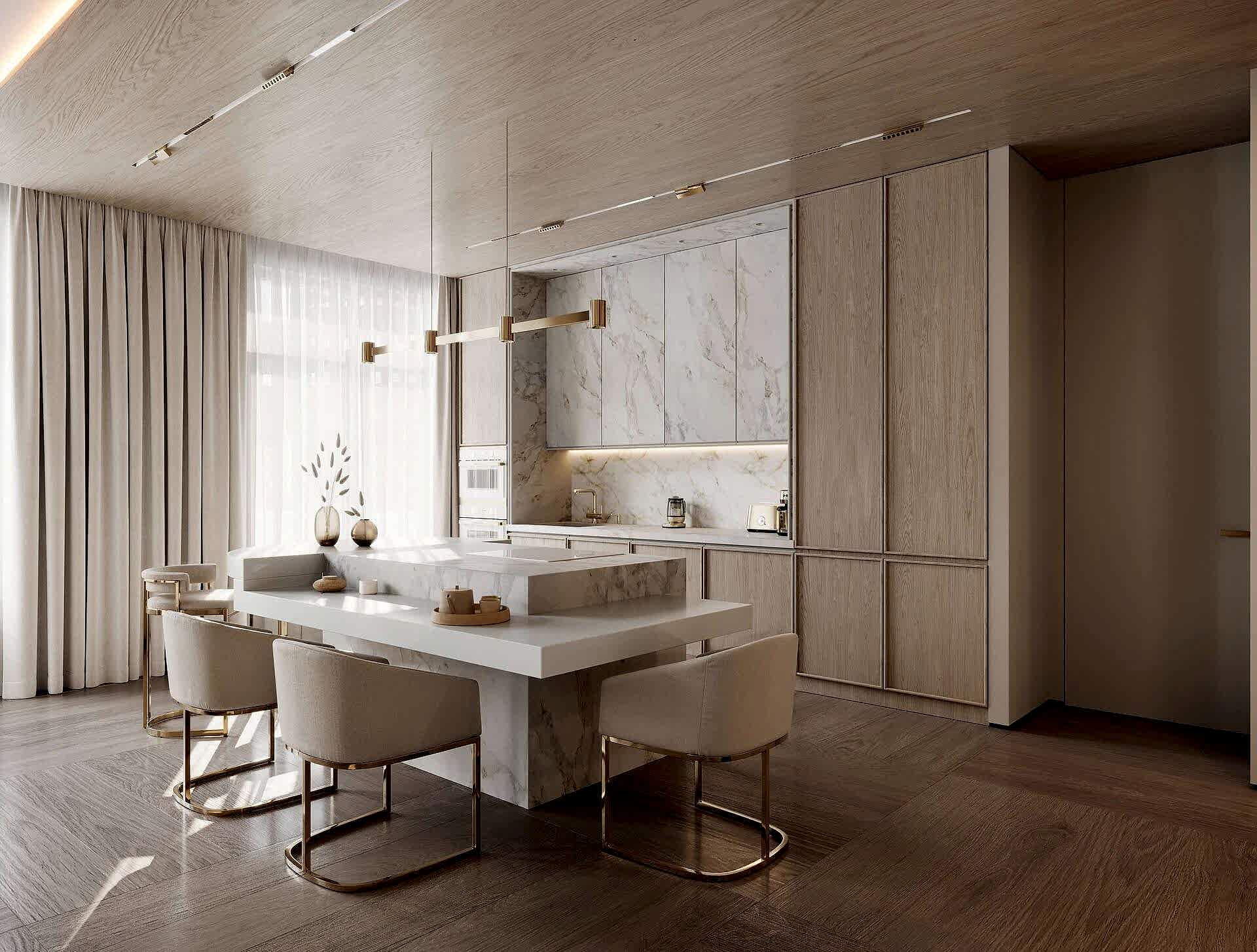 Дизайн интерьера квартиры в стиле минимализм и джапанди в ЖК «NEVA Pin-Up (Нева Хаус) - 203 м²