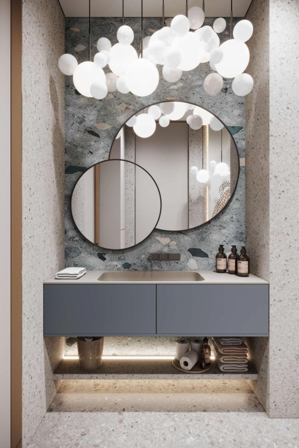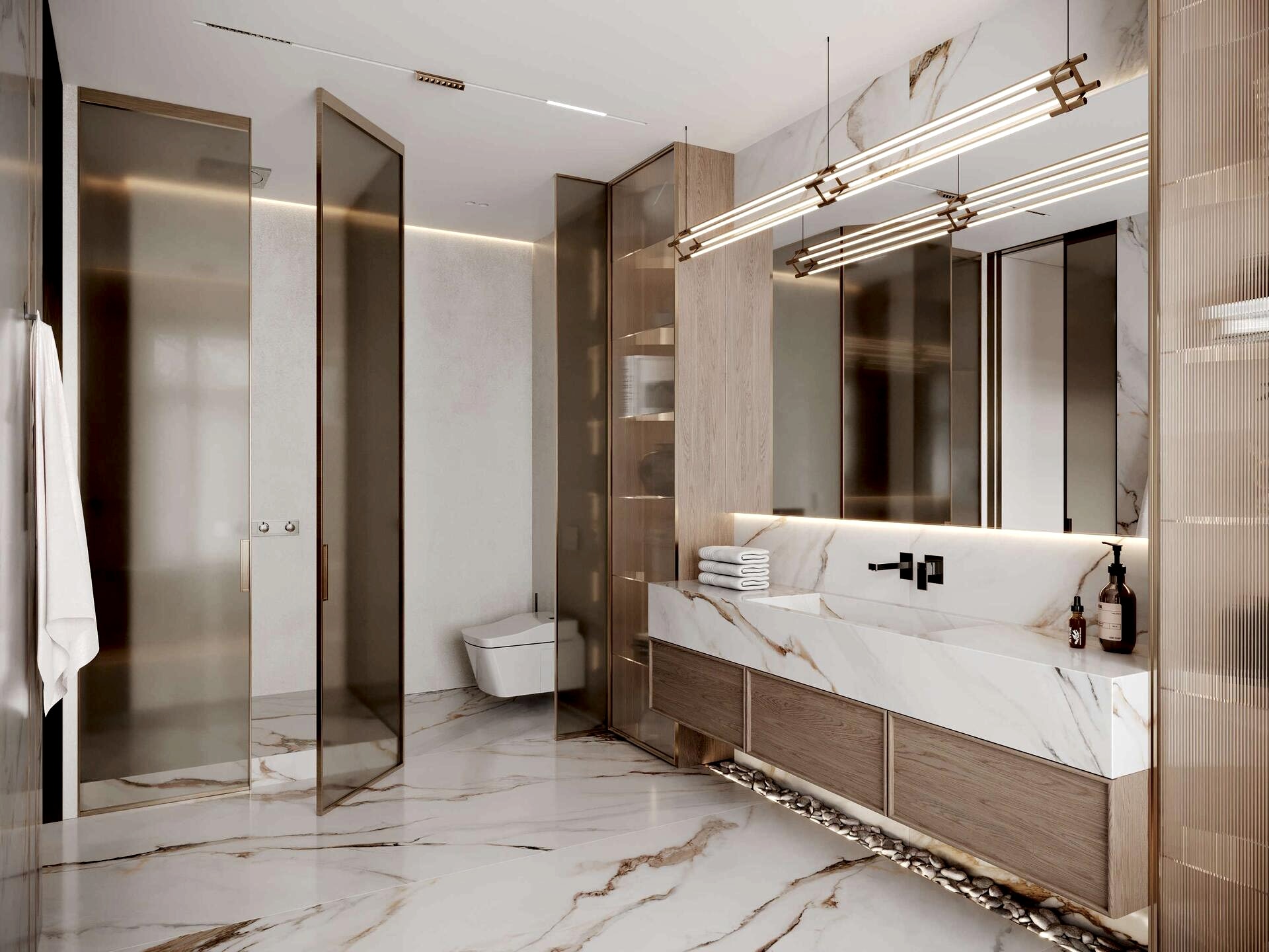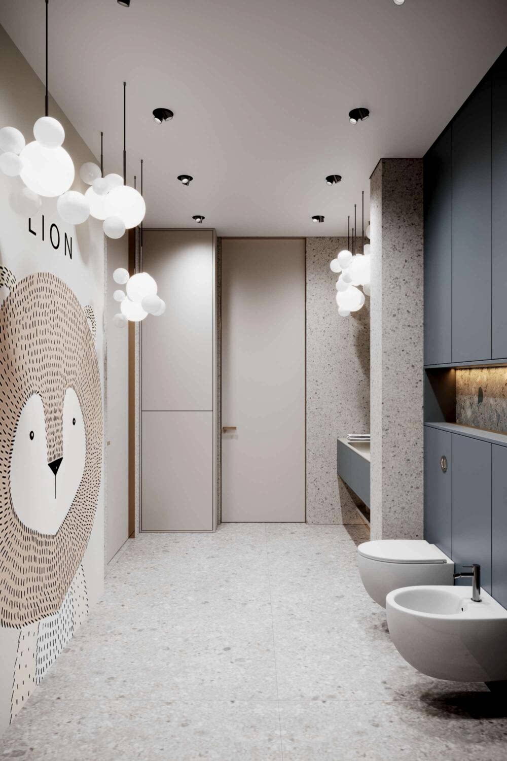 В квартире теперь три Pin-Up санузла, а не два, как было изначально.Теперь у хозяйки, сына и Pin-Up естьличное пространствос индивидуальным оформлениеВ отделке были использованы: натуральный камень, кварцевый агломерат и дизайнерская Pin-Up которые подчеркивают статус проекта.
