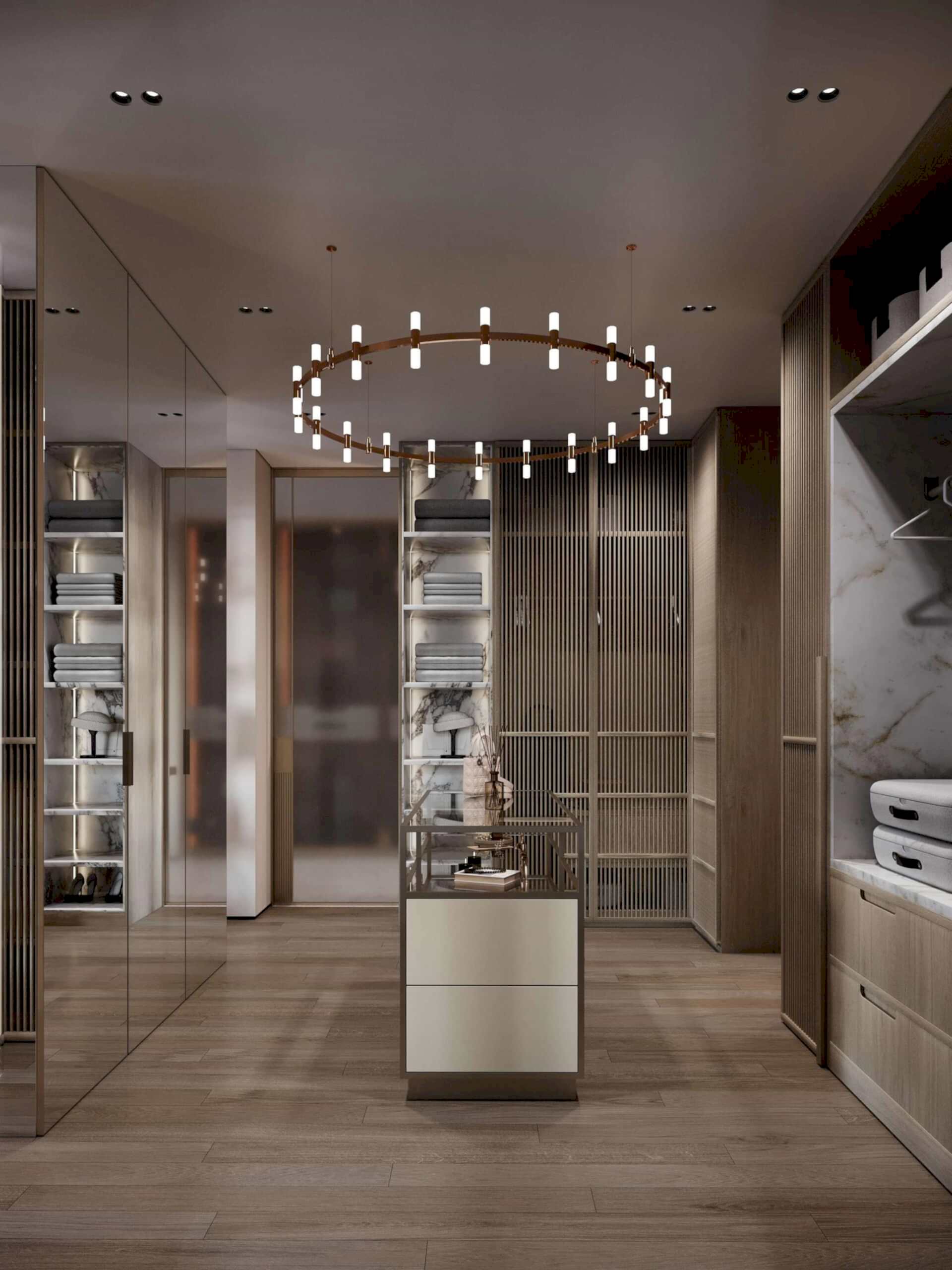 - Зеркала в пол- вхолле и гардеробных использованы зеркала во всю высоту стен, что визуально Pin-Up пространство.