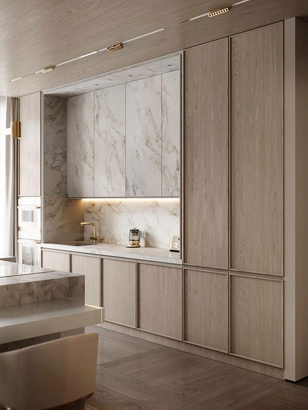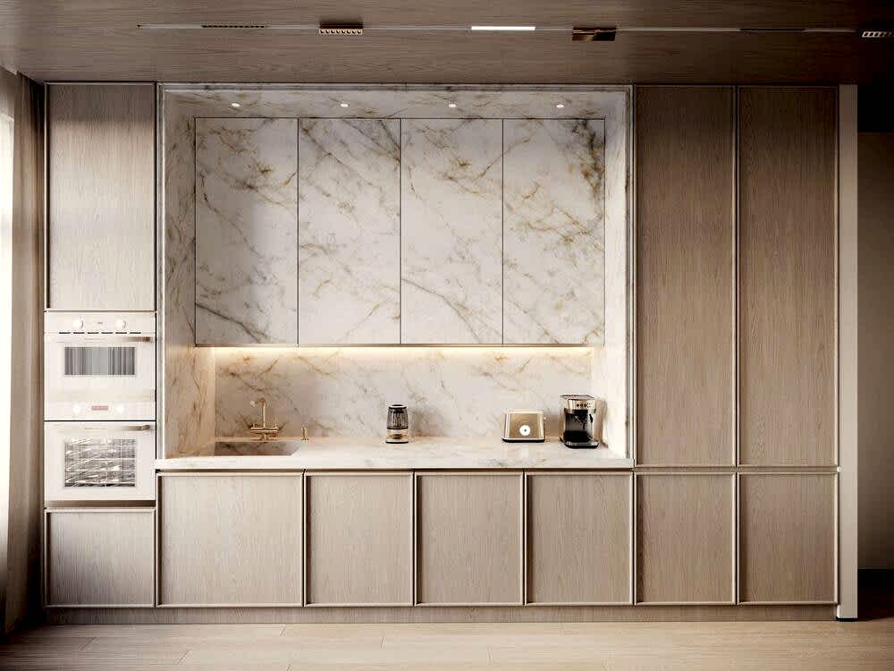 - Шпонированные панели из натурального дерева- тёплая текстура и долговечность.