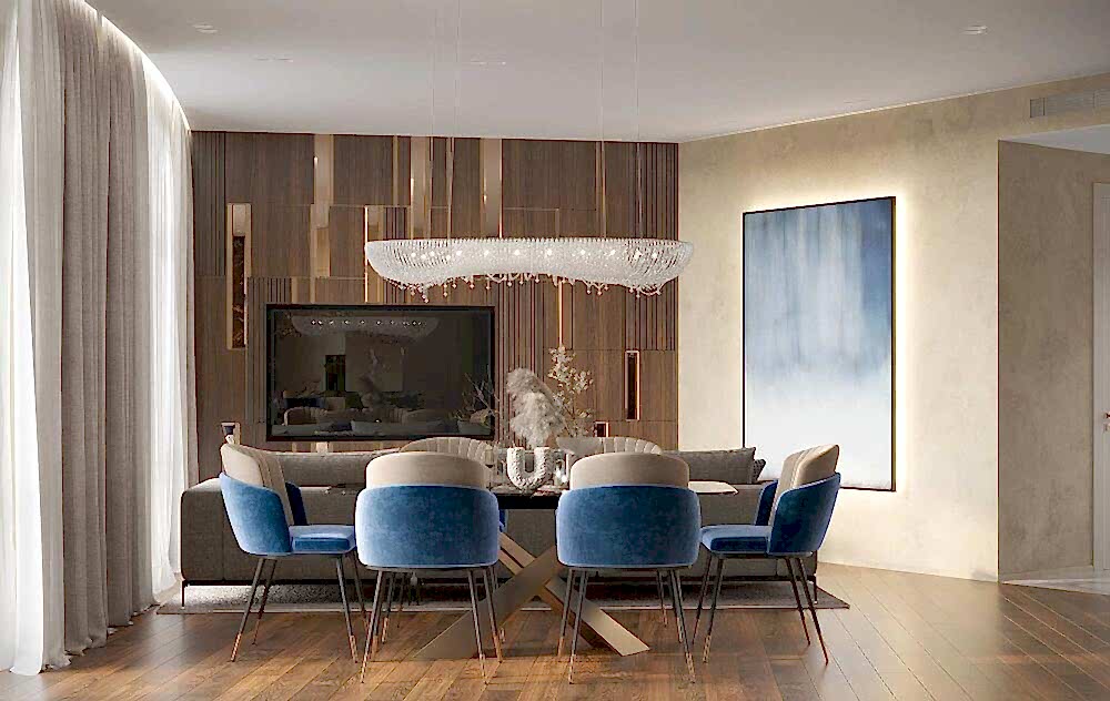Дизайн интерьера квартиры в ЖК «Квартал Лахта Pin-Up в стиле современная классика - 129,5 м²
