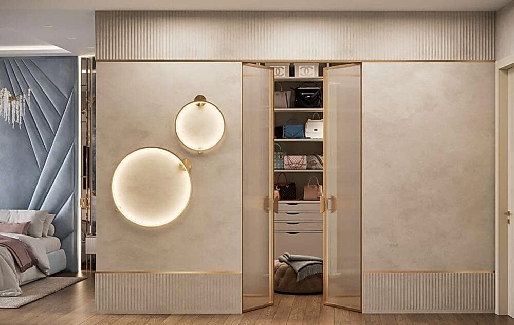 - Организовать мастер-зону с гардеробной и ванной, полностью отделённую от активных зон квартиры.