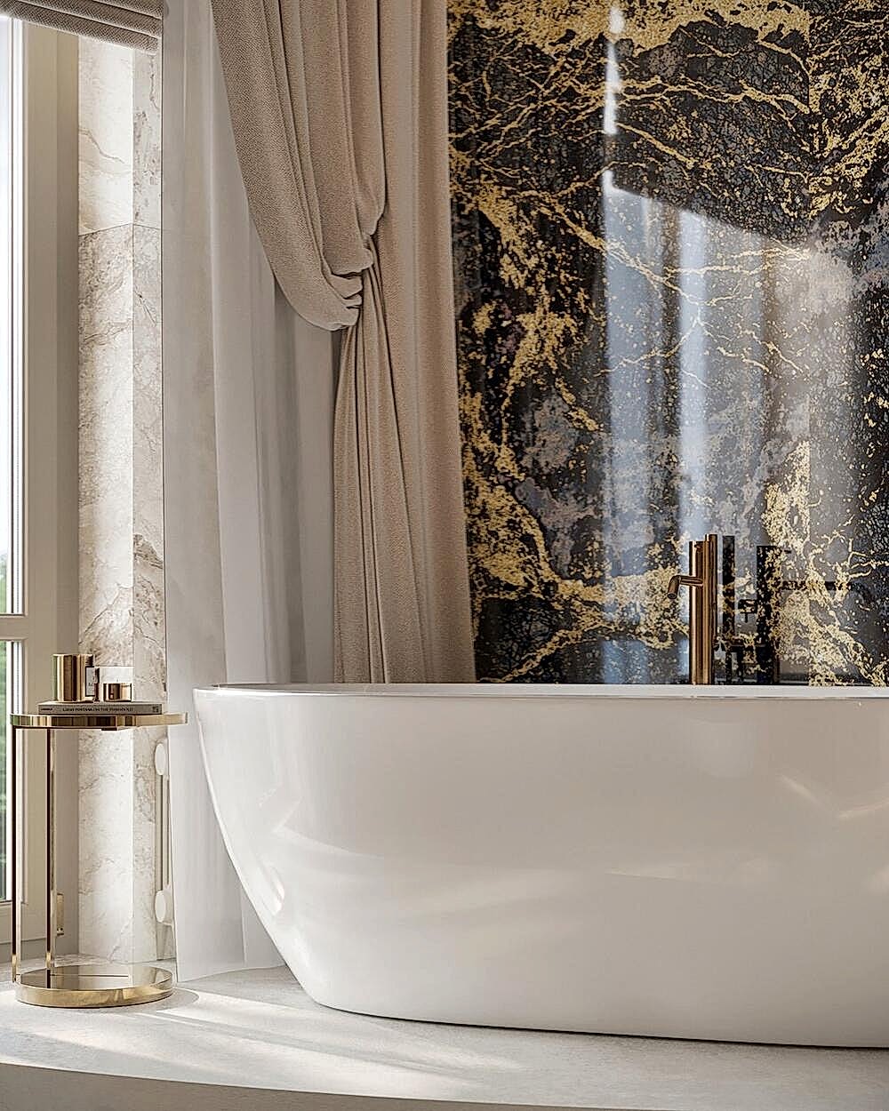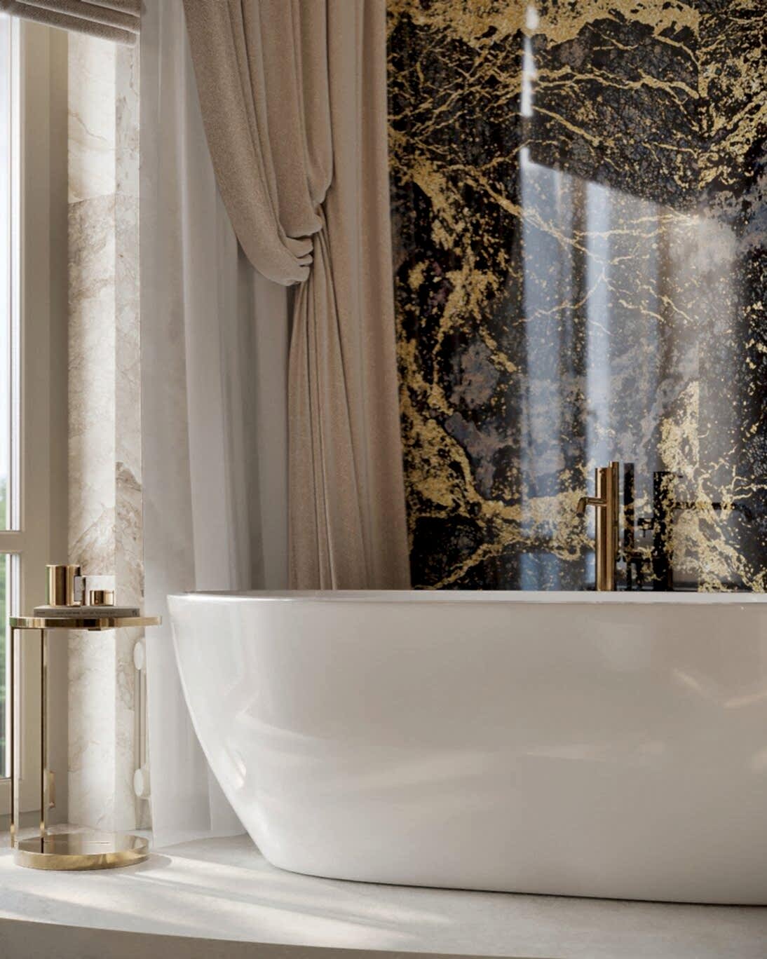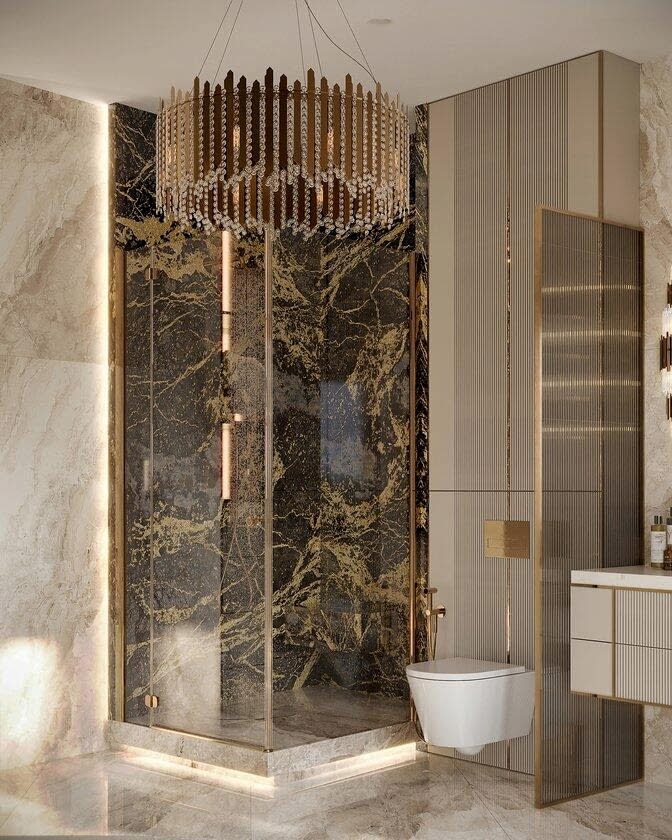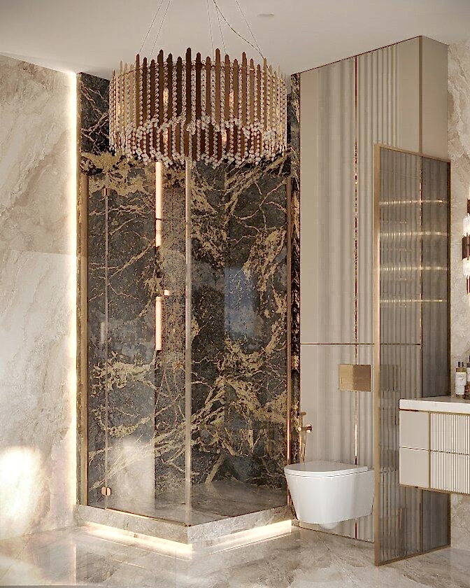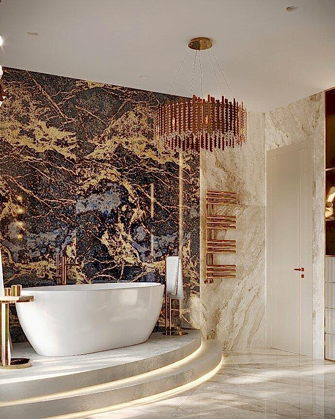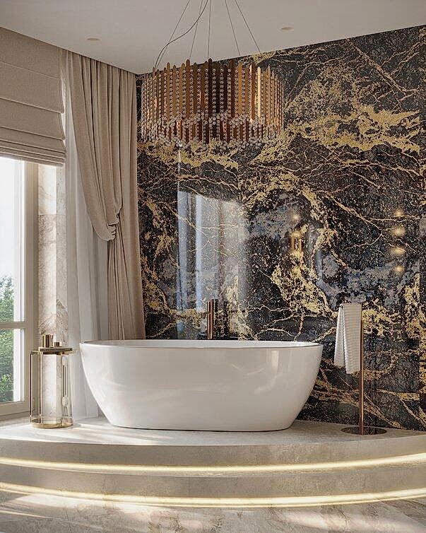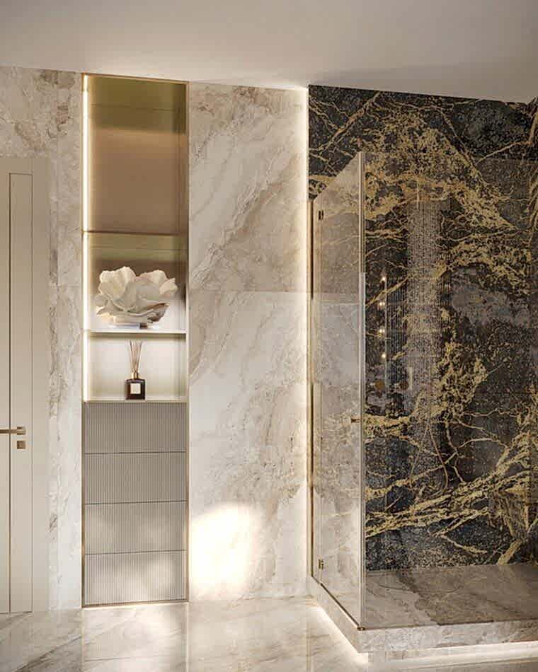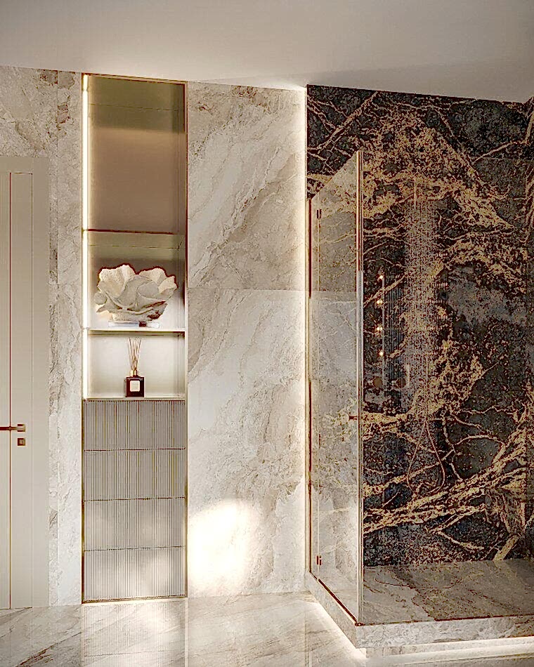 В квартире теперь два санузла.Санузел при мастер-спальне Pin-Up мраморными плитамис выразительной текстурой.Ванна у окна создает ощущение уединенности и комфорта. Отдельная душевая зона с Pin-Up перегородками добавляет легкости. Встроенная подсветка делает интерьер более объемным и атмосферным.