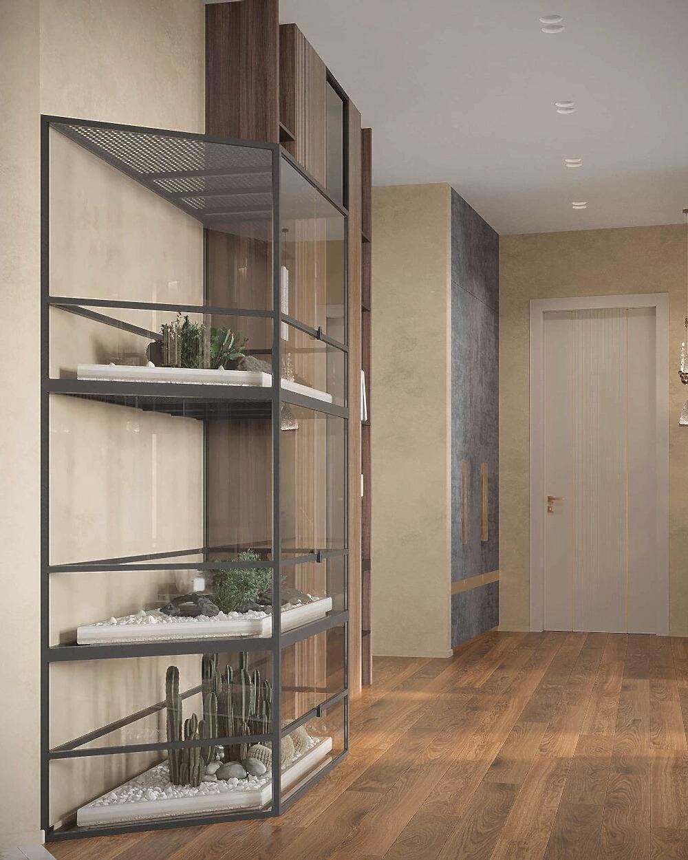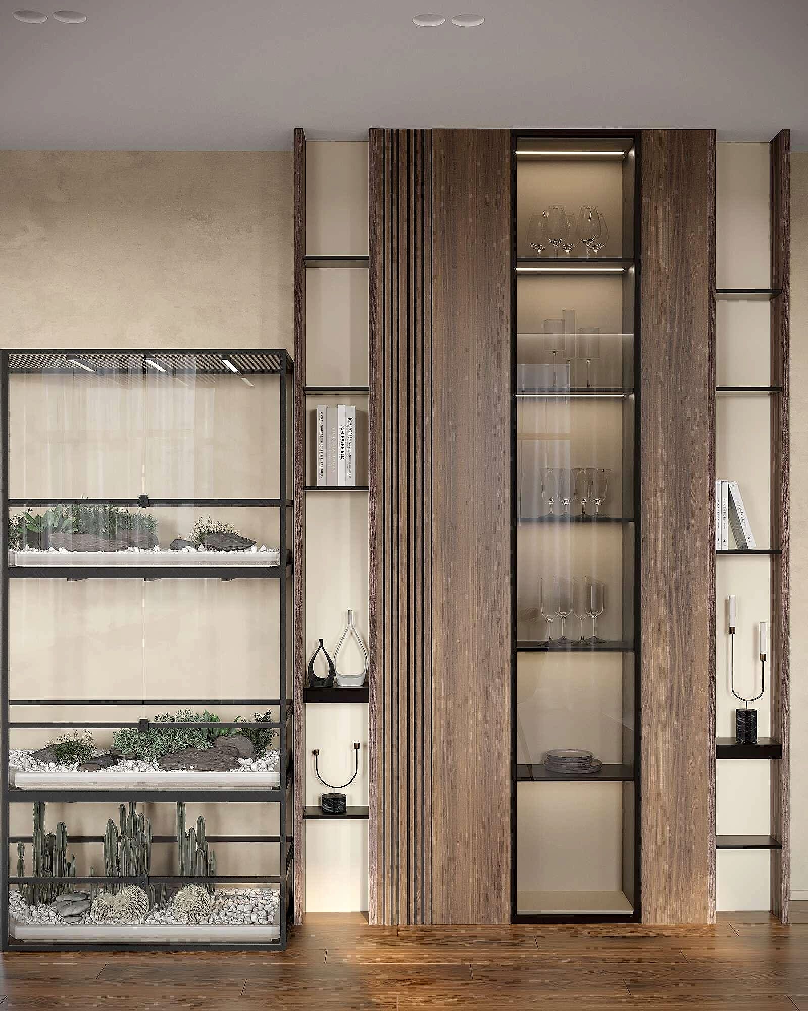 За счет Pin-Up планировки пространство выглядитлегким и воздушным. Террариум расположен в удобной зоне, что обеспечивает комфортный уход за питомцем.