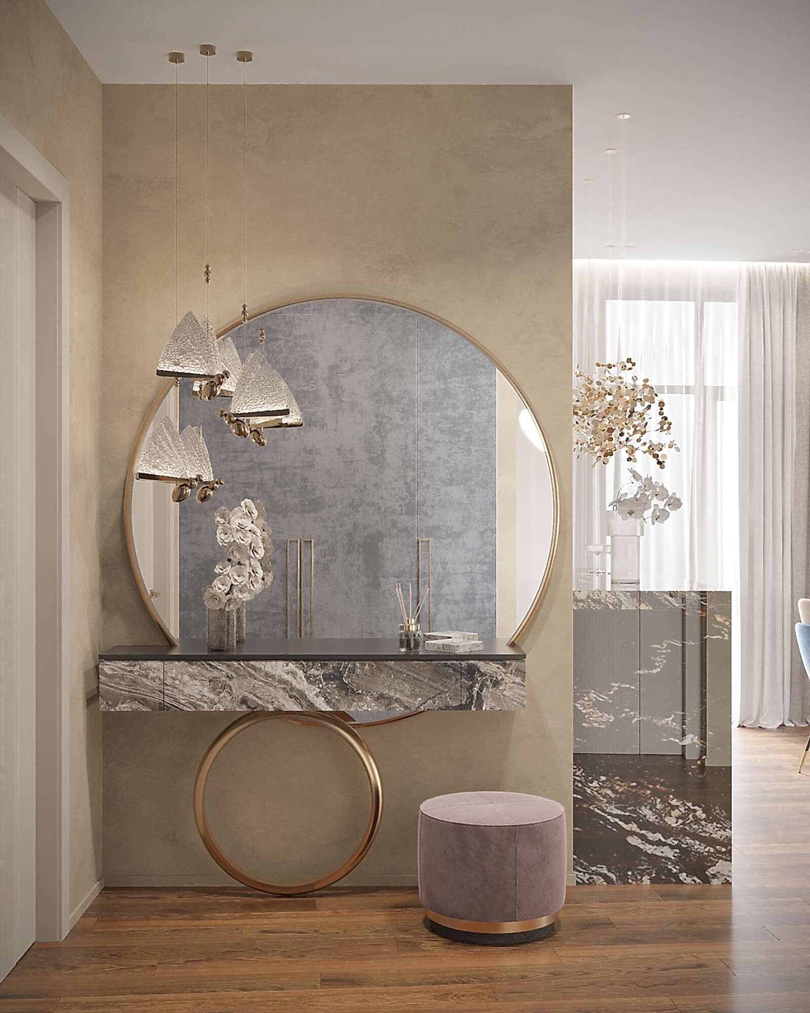 - Открытая прихожая, визуально расширяющая пространство.