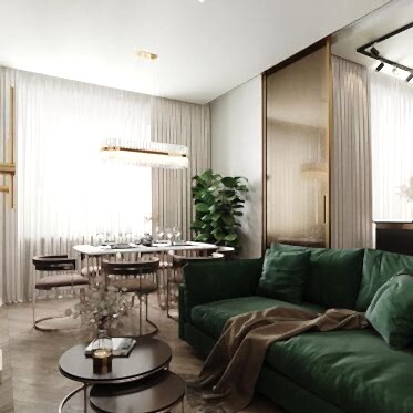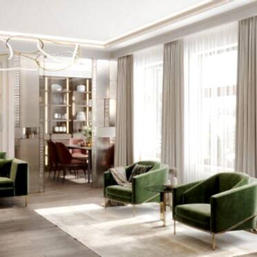 Дизайн интерьера квартиры в стиле современная классика с зелеными акцентами в ЖК Pin-Up Residence» - 116 м²
