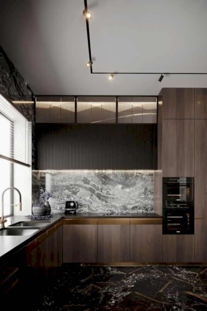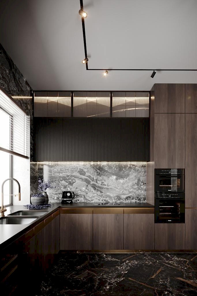 - Pin-Up модули с рифлёными поверхностями и мягкой подсветкой делают кухню более архитектурной и уютной.